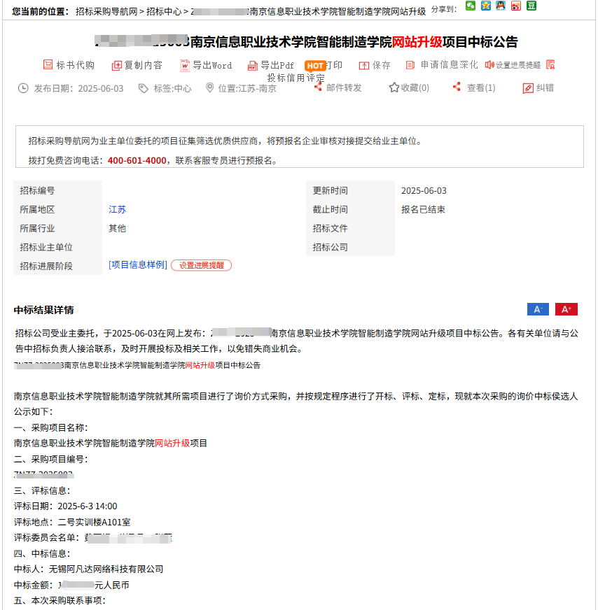 祝賀阿凡達(dá)網(wǎng)絡(luò)中標(biāo)南京信息職業(yè)技術(shù)學(xué)院智能制造學(xué)院網(wǎng)站升級(jí)項(xiàng)目。