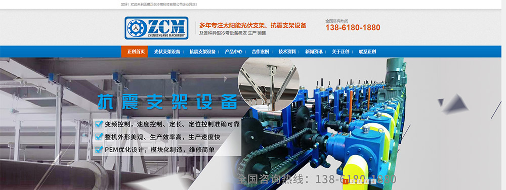 無錫正創冷彎抗震支架設備營銷型網站代運營案例