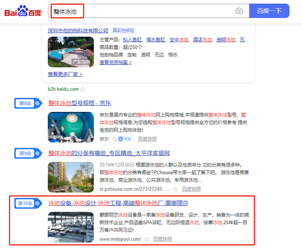 廣州蒙娜麗莎泳池設備有限公司營銷型網站SEO優化案例展示